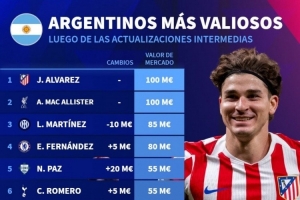 阿根廷球員德轉(zhuǎn)身價榜:小蜘蛛、麥卡1億歐居首,帕斯5500萬歐