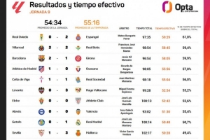 西甲第9輪各場(chǎng)比賽有效時(shí)間:最長不到60分鐘