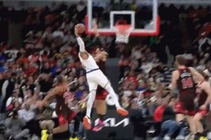 好在無礙!唐斯溜底線試圖隔扣武切維奇 扣飛失衡平拍在地