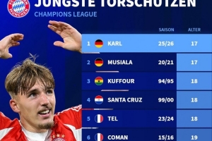 創(chuàng)造兩項(xiàng)紀(jì)錄!倫納特-卡爾是歐冠進(jìn)球最年輕拜仁球員+德國(guó)球員