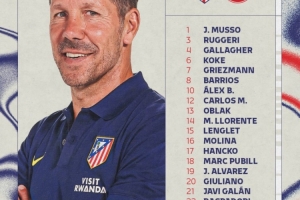 馬競大名單:1-穆索、3-魯杰里、4-加拉格爾、6-科克、7-格列茲曼、8-巴里奧斯、10-巴埃納、12-卡洛斯-馬丁、13-奧布拉克、14-馬科斯-略倫特、15-朗格萊、16-莫利納、17-漢茨科、18-普比爾、19-阿爾瓦雷斯、20-朱利亞諾-西蒙尼、21-加蘭、22-拉斯帕多里、23-尼科-岡薩雷斯、24-勒諾爾芒、28-陶菲克、31-埃斯基韋爾
