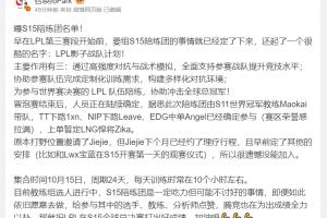 體育資訊9月30日訊 今日微博著名博主“召喚師Park?”更博透露目前關(guān)于S15陪練團(tuán)的部分人選名單。