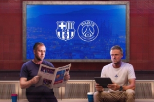 體育資訊10月1日訊 巴薩發(fā)布?xì)W冠對陣巴黎海報(bào),兩隊(duì)主教練出鏡亮相。