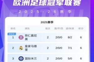 體育資訊10月1日訊 歐冠第2輪首日對陣結(jié)束,最新積分榜情況如上圖。目前6分領(lǐng)跑的是拜仁皇馬和國米三隊。