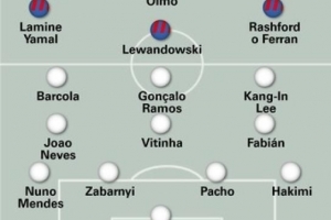 在萊萬(wàn)多夫斯基或費(fèi)蘭-托雷斯的懸念之外(也不排除兩人同時(shí)上場(chǎng)),另一個(gè)焦點(diǎn)在后防,庫(kù)巴西和埃里克-加西亞是熱門人選,除非阿勞霍再次首發(fā)。