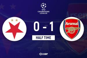 半場(chǎng)-阿森納暫1-0布拉格斯拉維亞 普羅沃德手球送點(diǎn)薩卡點(diǎn)射破門