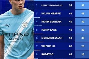 體育資訊10月2日訊 在本輪歐冠曼城2-2戰(zhàn)平摩納哥的比賽中,哈蘭德梅開二度。以下為自哈蘭德2019年首秀以來歐冠進球榜:
