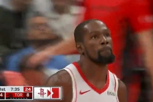 快打旋風(fēng)?阿門直接長傳 杜蘭特接球三大步雙手暴扣!