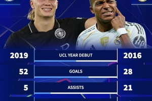 體育資訊10月2日訊 本輪歐冠,曼城2-2戰(zhàn)平摩納哥,哈蘭德在第50次歐冠出場(chǎng)梅開(kāi)二度。德轉(zhuǎn)也盤(pán)點(diǎn)了目前足壇兩大前鋒哈蘭德、姆巴佩在前50場(chǎng)歐冠數(shù)據(jù),具體如下: