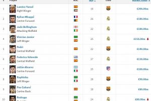 體育資訊10月02日訊 德轉(zhuǎn)今天發(fā)布了最新一期西甲身價(jià)更新,西甲前十身價(jià)也迎來些微的變化,最新西甲身價(jià)前十如下: