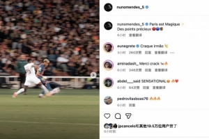 體育資訊10月2日訊 歐冠聯(lián)賽階段第2輪巴黎2-1擊敗巴薩,賽后巴黎后衛(wèi)努諾-門德斯發(fā)文慶祝勝利。