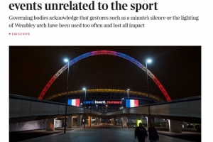 泰晤士報:英格蘭足球管理機構(gòu)決定不再為與足球無關(guān)事件默哀