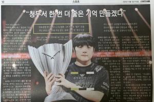 體育資訊10月3日訊?知名紙媒《首爾體育報》刊登Canyon奪冠瞬間,以下是部分譯文: