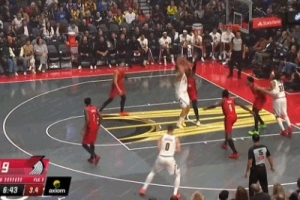 一氣呵成!夏普拿球晃開防守 底線突破騰空暴起雙手扣籃