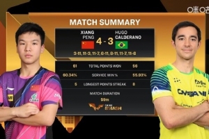 體育資訊10月4日訊 WTT中國大滿貫?zāi)袉?/4決賽,向鵬4-3戰(zhàn)勝雨果-卡爾德拉諾,晉級(jí)男單四強(qiáng),