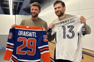 穆勒與德國冰球選手德賴塞特爾交換球衣并合影,后者效力于NHL埃德蒙頓油人隊(duì),也是司職前鋒,兩人社媒轉(zhuǎn)發(fā)合照,并互稱對(duì)方為傳奇。