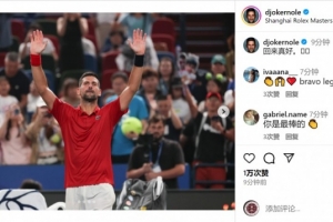 德約科維奇社媒曬出謝場照片,表達再次來到中國參賽的喜悅之情,并用中文寫道:“回來真好。”