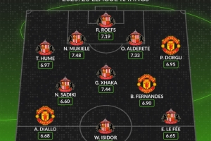 體育資訊10月4日訊 英超第7輪比賽,曼聯將在主場對陣升班馬桑德蘭,WhoScored根據球員本賽季的評分列出兩隊合體陣容,曼聯僅3名球員入選。
