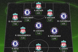 體育資訊10月4日訊 本輪英超焦點(diǎn)戰(zhàn)利物浦對(duì)陣切爾西比賽即將打響,數(shù)據(jù)網(wǎng)站W(wǎng)hoscored也盤點(diǎn)了兩隊(duì)球員本賽季英超評(píng)分最高陣容,具體如下: