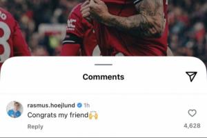 曼聯(lián)舊將霍伊倫在其社媒下面對舍什科表示祝賀:“恭喜你,我的朋友??”