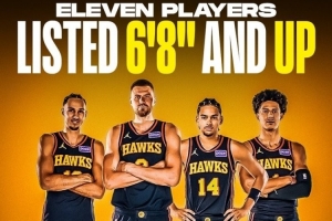算上雙向合同球員,老鷹全隊(duì)共有13名球員超過(guò)6尺8寸(約2.03米)!