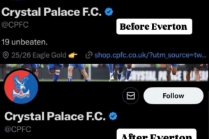 水晶宮各項(xiàng)賽事19場(chǎng)不敗就此告終,球隊(duì)官推的介紹也刪去了“19場(chǎng)不敗”的備注。