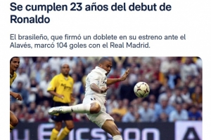 2002年10月6日,在伯納烏對(duì)陣阿拉維斯的比賽中,羅納爾多替補(bǔ)登場(chǎng)僅一分鐘便取得進(jìn)球,并最終以梅開(kāi)二度的表現(xiàn)開(kāi)啟了他的皇馬生涯。