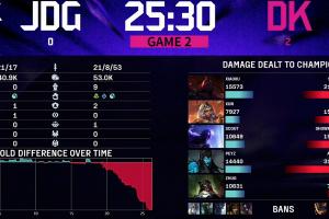 兩場比賽,第一場JDG前期優(yōu)勢但是被翻盤,次局DK更是全程碾壓拿下比賽勝利。