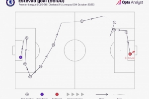 據Opta統計,10名切爾西球員(埃斯特旺被計算在內)參與埃斯特旺的進球,整個過程僅用28秒。