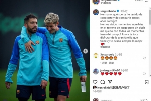 體育資訊10月8日訊 西班牙邊衛(wèi)阿爾巴將在本賽季結束后退役,前巴薩隊友羅貝托社媒發(fā)文祝福。