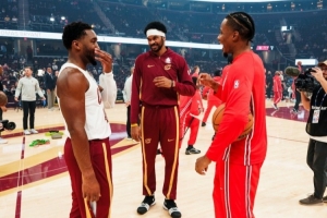 體育資訊10月8日訊 騎士官方社媒曬出了賽前米切爾、阿倫和前隊友奧科羅聊天的照片,并配文:“感覺這里變冷了。歡迎回來,Ice(奧科羅外號)!”