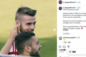 體育資訊10月8日訊 不久前,德赫亞更新了社交媒體,致敬宣布本賽季結(jié)束后退役的阿爾巴,兩人曾經(jīng)是西班牙國(guó)家隊(duì)的隊(duì)友。