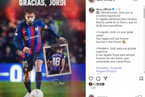 體育資訊10月9日訊 阿爾巴宣布本賽季結束后退役,巴薩名宿、現(xiàn)任總監(jiān)德科社媒發(fā)文祝福。