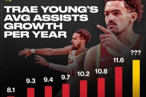 體育資訊10月9日訊 美媒underdog曬出一組特雷-楊的助攻數(shù)據(jù)。從圖中可以看出,特雷-楊的賽季場均助攻數(shù)每一年都在上漲,上賽季已經(jīng)來到了生涯最高的場均11.6次。