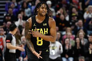 本場(chǎng)比賽,爵士球員森薩博表現(xiàn)出色,尤其是外線十分神準(zhǔn),在26分鐘的時(shí)間里,投籃15中9,三分球10中6,拿到24分3籃板1助攻1搶斷1蓋帽的數(shù)據(jù)。