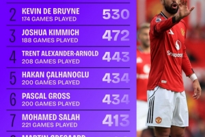 體育資訊10月10日訊 據(jù)Squawka統(tǒng)計,2019-2020賽季以來,B費創(chuàng)造557次機(jī)會,五大聯(lián)賽同期最多。