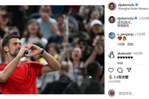 德約科維奇社媒曬出比心的照片,慶祝勝利,并用中文寫道:“還在戰(zhàn)斗?!?/p>