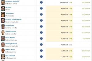 體育資訊10月10日訊 今日德轉(zhuǎn)更新法甲球員身價(jià),登貝萊身價(jià)上漲至1億歐排名法甲第1,維蒂尼亞、內(nèi)維斯、克瓦拉茨赫利亞、杜埃四人身價(jià)高達(dá)9000萬歐,法甲身價(jià)前10位都為巴黎球員。