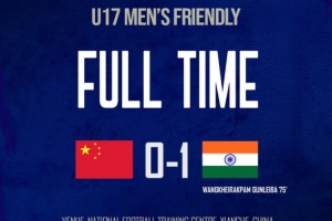 特別是第10分鐘時,印度隊場上隊長、司職中前衛(wèi)的10號岡特在反擊中于中路偏左區(qū)域帶球突進,然后在禁區(qū)前一腳大力抽射,球擊中近側球門角后彈出,驚出國少隊員們一身冷汗。球彈回到球場內(nèi)后,又是印度隊員搶到點,再次組織進攻,連續(xù)三腳射門,幸虧門將和防守球員全力阻擋,確保國少隊大門不失,這波進攻讓國少隊在場上顯得有些難堪。