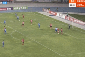 比賽第23分鐘,安屹斐過(guò)人后倒三角回敲,劉樂(lè)門(mén)前兩連擊破門(mén),石家莊功夫1-1扳平遼寧鐵人。