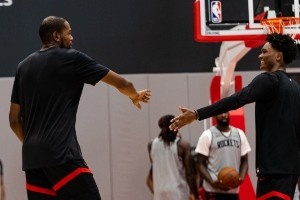 體育資訊10月12日訊 火箭官方更新了球隊今天的訓練照,多位球員都有出鏡,看球衣顏色似乎進行了分組對抗,球員的狀態(tài)看起來都比較積極。
