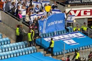 挪威5比0以色列比賽中兩隊球迷打出的橫幅