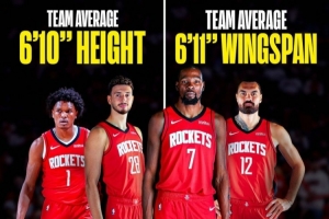 體育資訊10月13日訊 Clutch Points報道,根據(jù)官方數(shù)據(jù)信息,火箭全隊平均身高達(dá)2米08(6尺10),全隊平均臂長2米11(6尺11.2),相比聯(lián)盟平均的平均臂展2米08(6尺10)還要更長。