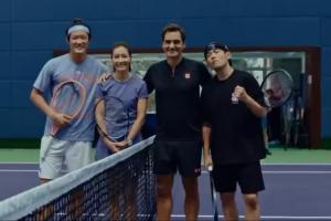 體育資訊10月13日訊 上海大師賽官方微博曬出了神仙組合:周杰倫、李娜、費(fèi)德勒和張之臻進(jìn)行雙打的視頻。