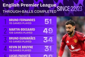 體育資訊10月13日訊 根據(jù)數(shù)據(jù)機(jī)構(gòu)Squawka的統(tǒng)計(jì),自2022/23賽季以來(lái),B費(fèi)在英超聯(lián)賽中以115場(chǎng)比賽完成51次成功直塞的數(shù)據(jù)高居榜首。厄德高以108場(chǎng)比賽送出49次直塞的成績(jī)緊隨其后,位列第二。