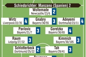 后衛(wèi):勞姆(3)、施洛特貝克(2)、若納坦-塔(3)、基米希(3)