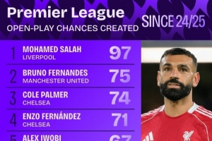 體育資訊10月16日訊 日前,Squawka統(tǒng)計(jì)了英超運(yùn)動(dòng)戰(zhàn)創(chuàng)造機(jī)會(huì)次數(shù)排行。