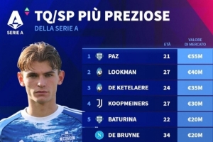 體育資訊10月16日訊 日前,德國(guó)轉(zhuǎn)會(huì)市場(chǎng)統(tǒng)計(jì)了意甲前腰、二前鋒身價(jià)排行,尼科-帕斯5500萬(wàn)歐居首,德布勞內(nèi)2000萬(wàn)歐并列第五。