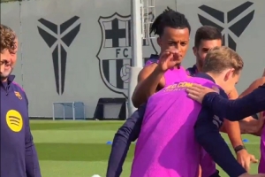 體育資訊10月16日訊 巴薩球員在訓(xùn)練時列隊歡迎德容和費爾明,并對他們致以拍頭禮進行祝賀。