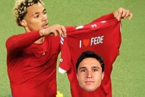 ?;倏藭癯鲎约涸趯?duì)陣南安普頓的比賽中脫衣慶祝的照片,并在球衣上加上了小基耶薩的頭像,并配文“我??費(fèi)德(費(fèi)德里科-基耶薩的昵稱)”。